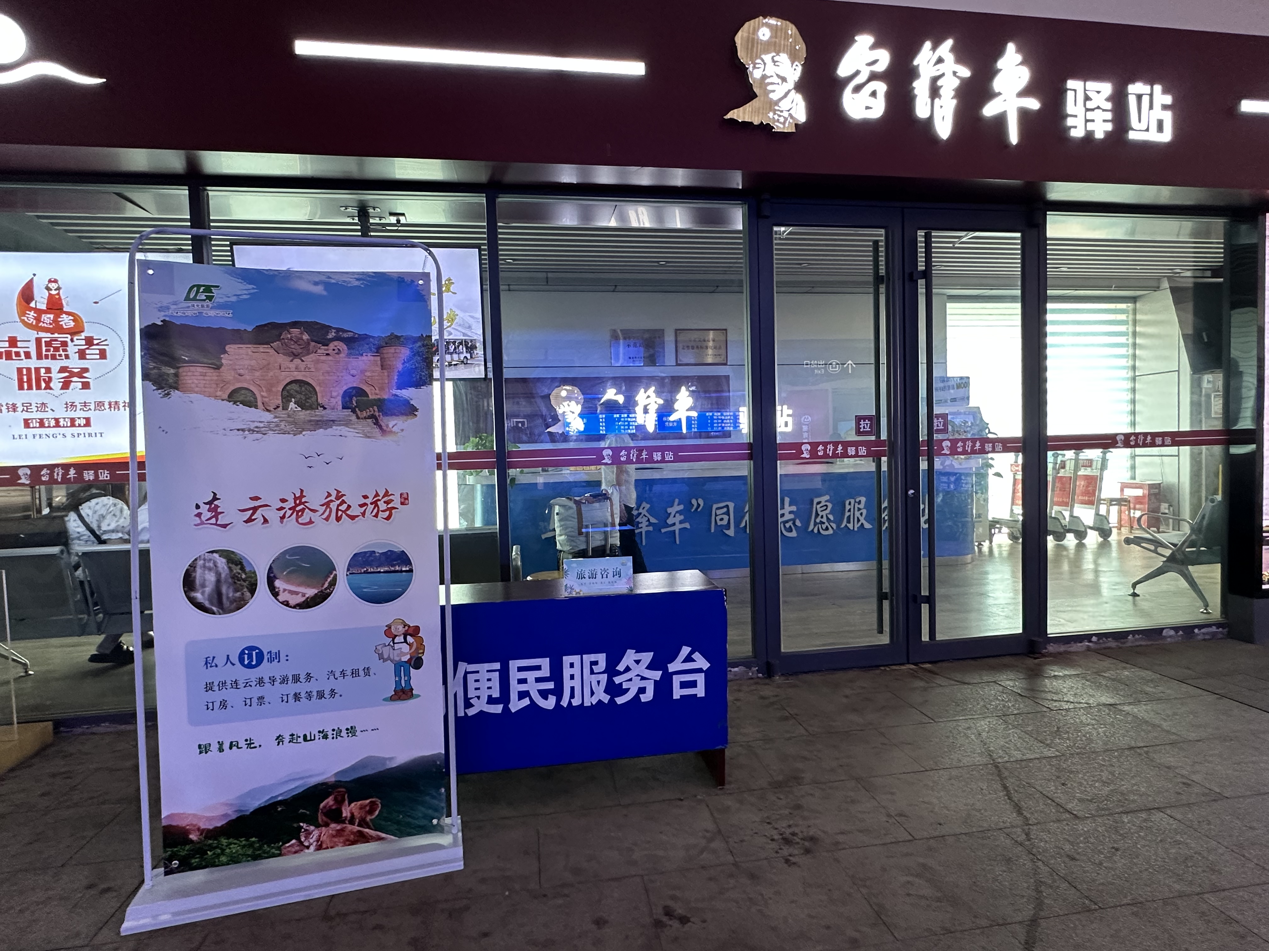 風(fēng)光國(guó)際旅行社在“雷鋒車”驛站設(shè)立旅游咨詢服務(wù)臺(tái),擺放連云港各個(gè)景區(qū)資料,并在高鐵站出站口醒目位置樹立連云港旅游宣傳海報(bào)。工作人員身穿紅色志愿者馬甲迎接來(lái)自全國(guó)各地的出站旅客,熱情的為他們指路、介紹連云港的旅游攻略,并根據(jù)旅客的具體需求,個(gè)性化安排連云港旅游服務(wù),包括訂票、訂房、訂餐、導(dǎo)游服務(wù)及汽車租賃等,并且在每個(gè)環(huán)節(jié)都賦予外地游客專屬的體驗(yàn)。