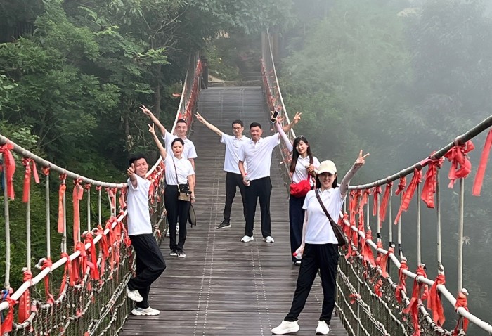 職工們奮力攀登山峰,互相鼓勵(lì)扶持,在挑戰(zhàn)中磨礪意志、增進(jìn)情誼,體驗(yàn)登頂喜悅并加深對(duì)生態(tài)理念的理解。