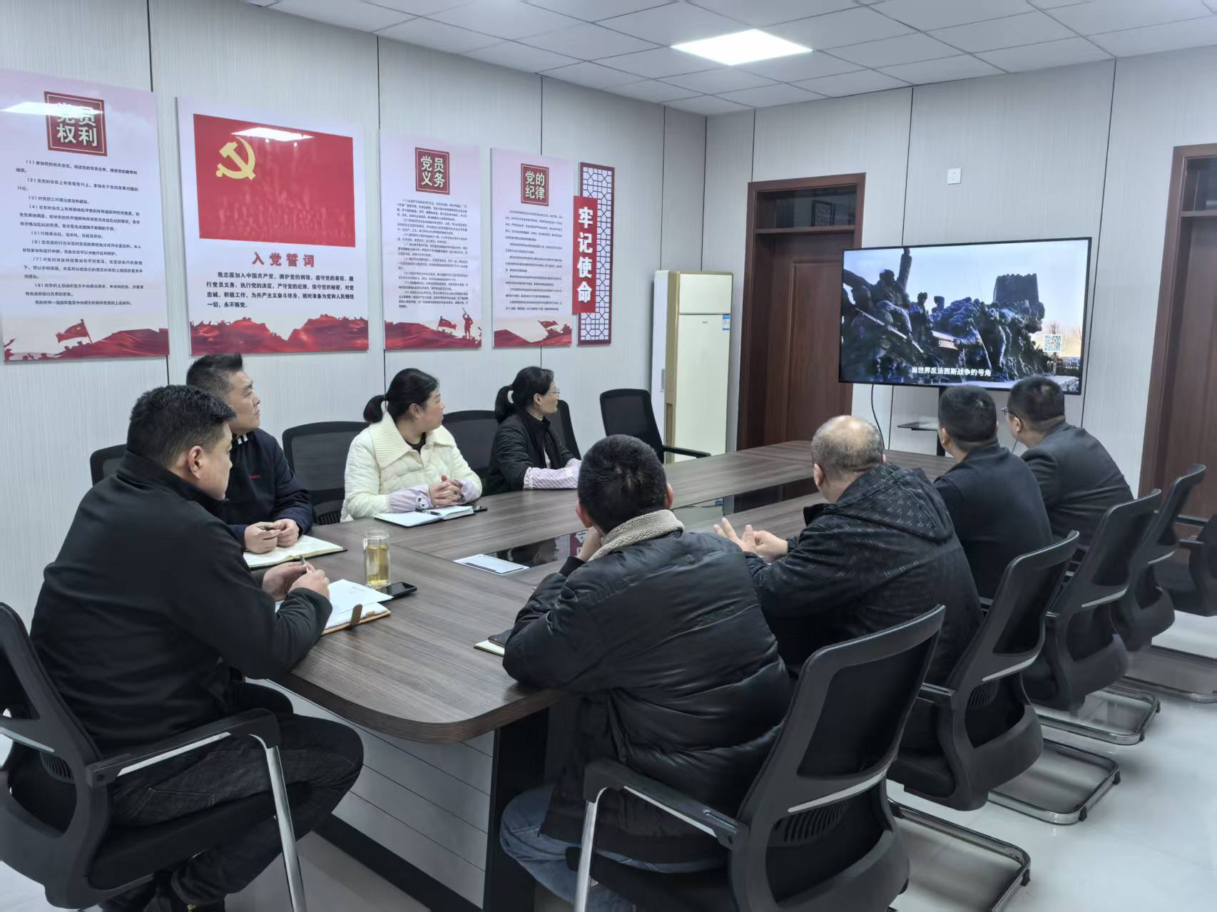 在影片觀看環(huán)節(jié),理論文獻(xiàn)片《勝利》4-6集以“血肉筑起的長(zhǎng)城”“無(wú)處不在的號(hào)角”“穿越烽火的傳奇”為核心內(nèi)容,通過(guò)首次披露的國(guó)際珍貴影像資料與抗戰(zhàn)老兵口述歷史,全景式呈現(xiàn)了中國(guó)共產(chǎn)黨引領(lǐng)民族覺(jué)醒、凝聚抗戰(zhàn)力量的壯闊歷程?!栋酥葮s光》12-13集,延續(xù)了系列片紀(jì)實(shí)風(fēng)格,聚焦江蘇抗日根據(jù)地的共產(chǎn)黨人故事,通過(guò)細(xì)膩的敘事手法與鮮活的歷史細(xì)節(jié),再現(xiàn)了革命先輩們堅(jiān)定理想信念、踐行初心使命的崇高品格。影片中,革命先烈們不畏強(qiáng)暴、血戰(zhàn)到底的英雄氣概,與人民群眾血肉相連、生死與共的優(yōu)良作風(fēng),深深觸動(dòng)了在場(chǎng)每一位黨員的心靈,引發(fā)了強(qiáng)烈的情感共鳴。