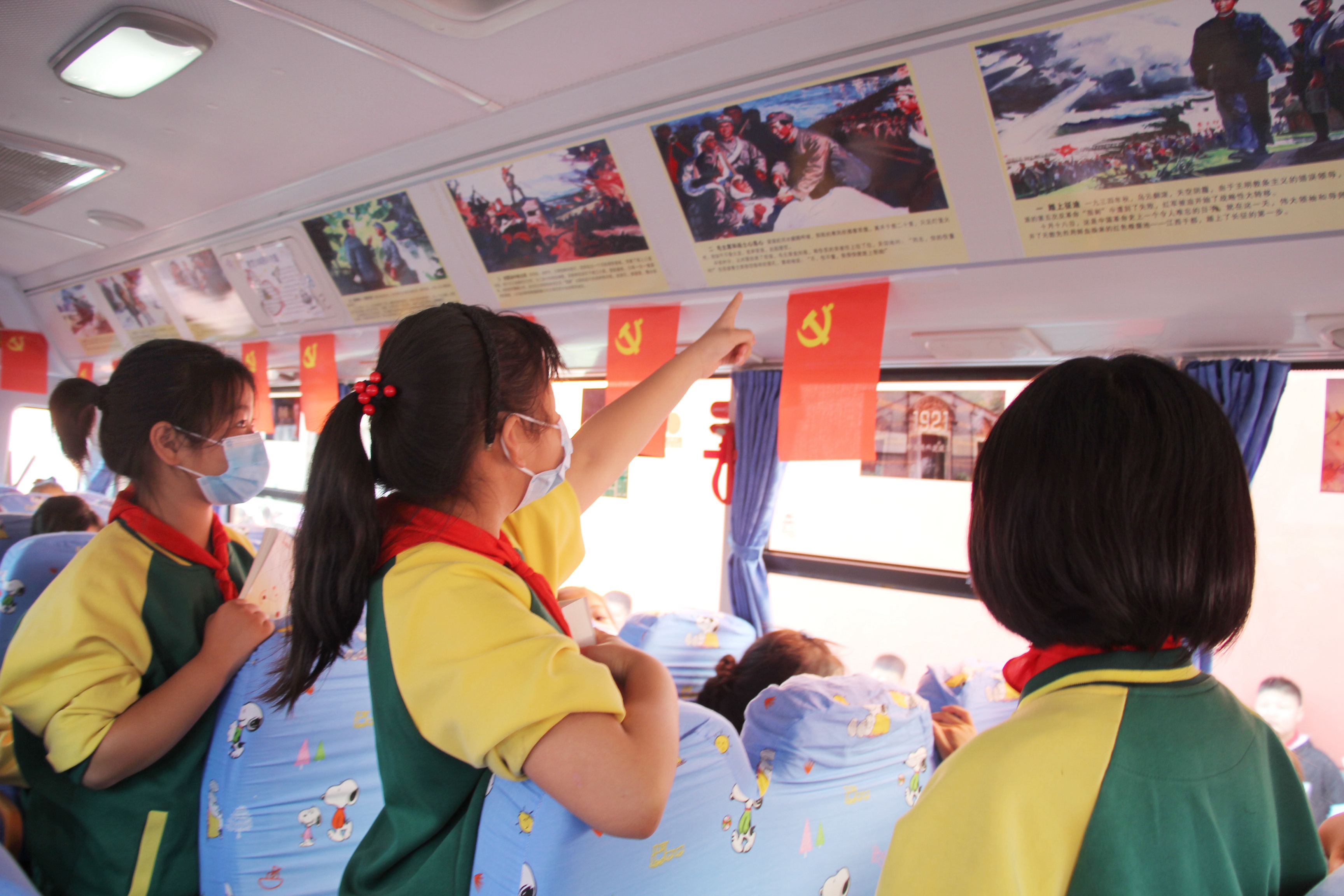 在黨史教育示范車(chē)廂內(nèi),一幅幅主題鮮明、引人入勝的宣傳展板呈現(xiàn)在孩子們面前,內(nèi)容從中國(guó)共產(chǎn)黨誕生到新中國(guó)成立重大活動(dòng)、重大戰(zhàn)役,黨的一大到十九大的光輝歷程,從紅船精神、井岡山精神到延安精神,圖文并茂地展示了中國(guó)共產(chǎn)黨的百年革命歷史,孩子們?cè)诔塑?chē)途中便可耳濡目染中國(guó)共產(chǎn)黨黨史。