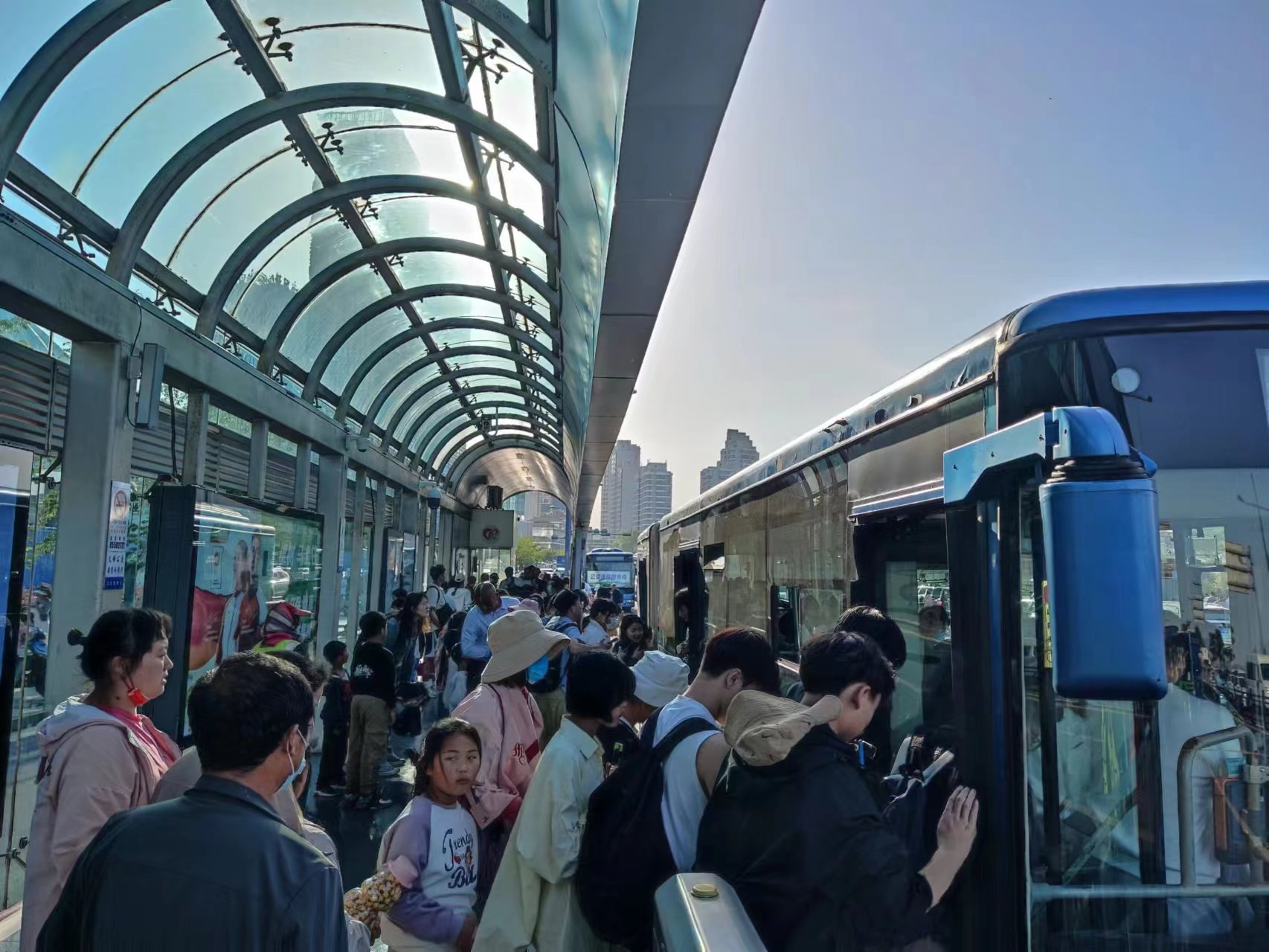 五一期間,公交集團(tuán)積極響應(yīng)旺季交通疏解文件要求,提前謀劃,靜心部署,通過制作應(yīng)急預(yù)案,現(xiàn)場多次推演,結(jié)合各點(diǎn)位人員全天候現(xiàn)場調(diào)度和巡查、后臺(tái)智能化監(jiān)控、加密班次、駕駛員超負(fù)荷在崗流水線發(fā)車等保障措施避免了花果山景區(qū)大量人流聚集和平安接駁。期間累計(jì)投放運(yùn)力達(dá)163臺(tái)次,發(fā)送總班次達(dá)2465班,運(yùn)送客流達(dá)14.83萬人次,組織70余名志愿者現(xiàn)場為四面八方的游客提供咨詢、引導(dǎo)和轉(zhuǎn)接駁引導(dǎo)服務(wù)。接駁期間,幫助5名安徽游客44分鐘內(nèi)高效準(zhǔn)點(diǎn)送至高鐵站安全到家并收到感謝信;幫助外地游客找回丟失的手機(jī)收到12345市政府服務(wù)熱線的表揚(yáng)單;幫助南京游客找到丟失的筆記本電腦;扶老攜幼的事例更是數(shù)不勝數(shù)。