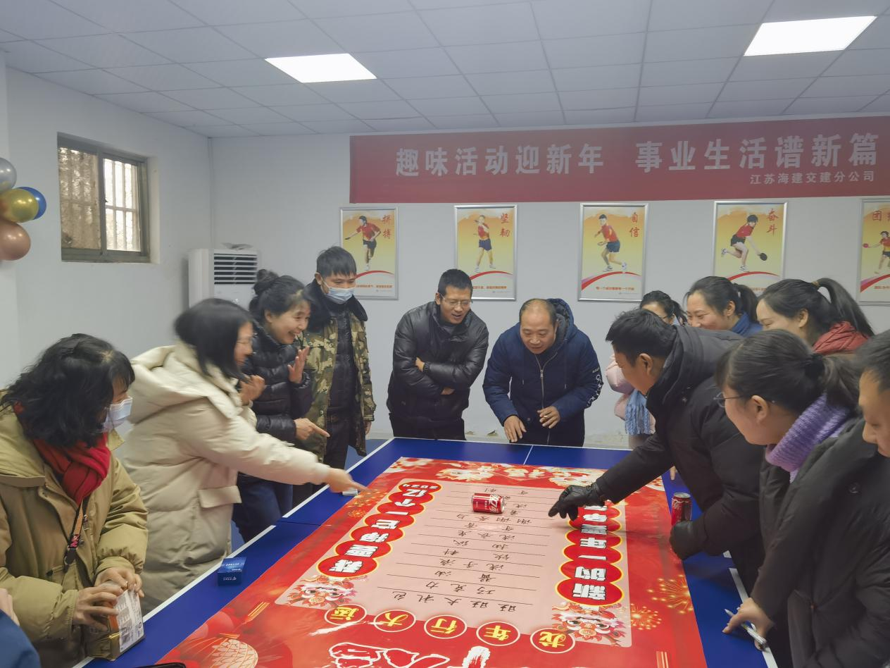 龍行龘龘,欣欣家國。伴隨著冬日里最溫暖的陽光懷揣著2023年滿滿的收獲,江蘇海建交建分公司工會組織了一場2024年“迎新春”職工趣味活動。本次活動共設置了三個項目,包括摜蛋、滾滾樂、以及球拍端乒乓球。