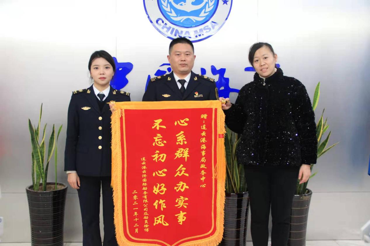 11月28日,物流云濟公司接船員徐博委托申辦化學品船貨物操作高級培訓換證業(yè)務。當天,業(yè)務員在申辦中發(fā)現船員所持證書化學品船貨物操作高級培訓科目已過五年時效期,不能進行更新?lián)Q證。公司及時與船員溝通進一步了解情況,得知由于近年疫情影響,油化一體船業(yè)務驟減,船員近幾年只能在普通貨船工作,導致培訓過時效期。了解情況后公司積極聯(lián)系到連云港海事局政務中心,咨詢相關政策。經過多方溝通后,在連云港海事局政務中心葛景勇主任幫助下,陳佳琳科員通過“綠色通道”加急辦理,12月27日海員徐博化學品船貨物操作高級培訓資格證申辦完成,為了表示感激之情,云濟公司及船員聯(lián)名送上錦旗。
