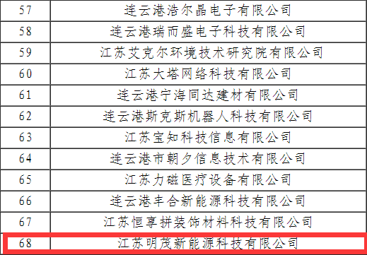 2022年12月19日,《連云港高新區(qū)高新技術企業(yè)入庫培育實施細則(試行)》公示期結束,江蘇明茂新能源科技有限公司(以下簡稱“明茂公司”)成功加入連云港高新區(qū)高新技術企業(yè)培育庫。