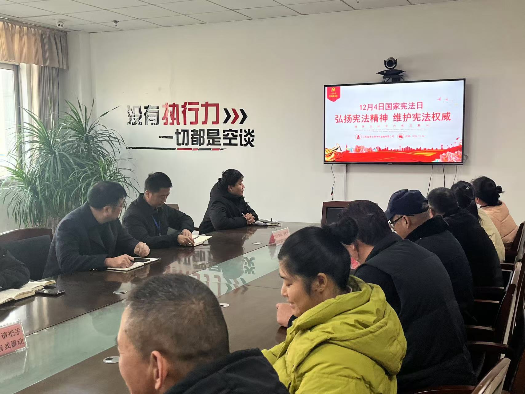 通過在公司電子屏播放憲法宣傳標(biāo)語、組織公司職工參加憲法宣傳會議等形式,展示憲法知識,為職工講解憲法的歷史、意義和價值等重要內(nèi)容。同時,利用公司內(nèi)部微信群,開展線上憲法知識學(xué)習(xí)活動,讓職工在業(yè)余時間自主學(xué)習(xí)憲法知識。