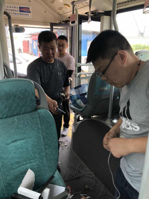 為了全力做好車輛上線運營準備工作,6月19日,市民卡公司安全信息部部長馬寶浦、智慧公司技術(shù)總監(jiān)林偉及智慧公交事業(yè)部技術(shù)人員,加班加點、頂著酷暑加緊安裝刷卡機、報站器、攝像頭,并對報站器、車內(nèi)外LED顯示屏進行聯(lián)動調(diào)試。