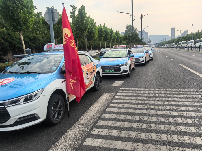 清晨7時許,新海高級中學北門附近已是一片熱鬧景象?!芭c雷鋒車同行·雷鋒的士”車隊的志愿者們早已抵達,他們的愛心送考出租車整齊排列,宛如一道亮麗的風景線。車身上,“高考加油、愛心送考”的標識格外醒目。