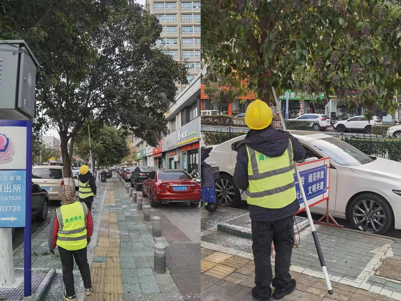 為確保大樹修剪安全有效進(jìn)行,修剪前,市民卡公司技術(shù)人員及時(shí)疏導(dǎo)交通,保證工作人員、行人及過往車輛的安全。修剪中,按照規(guī)定著反光背心、帶安全帽、設(shè)圍擋警戒標(biāo)志。修剪后,及時(shí)清理樹枝落葉,做到隨剪隨掃,垃圾日產(chǎn)日清。