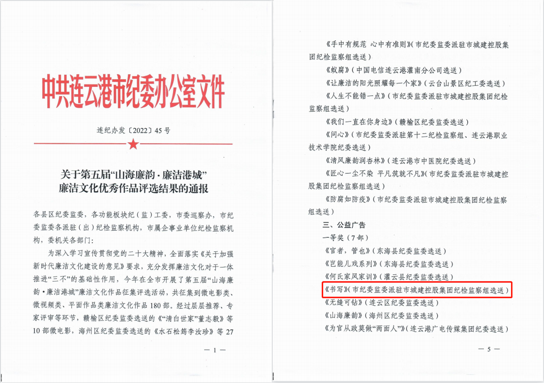為深入學(xué)習(xí)宣傳貫徹黨的二十大精神,全面落實(shí)《關(guān)于加強(qiáng)新時(shí)代廉潔文化建設(shè)的意見》要求,今年連云港市紀(jì)委在全市開展了第五屆“山海廉韻·廉潔港城”廉潔文化作品征集評選活動。公交集團(tuán)積極組織職工投遞作品參選,其中王琰創(chuàng)作的平面作品《書寫》榮獲公益廣告類一等獎。