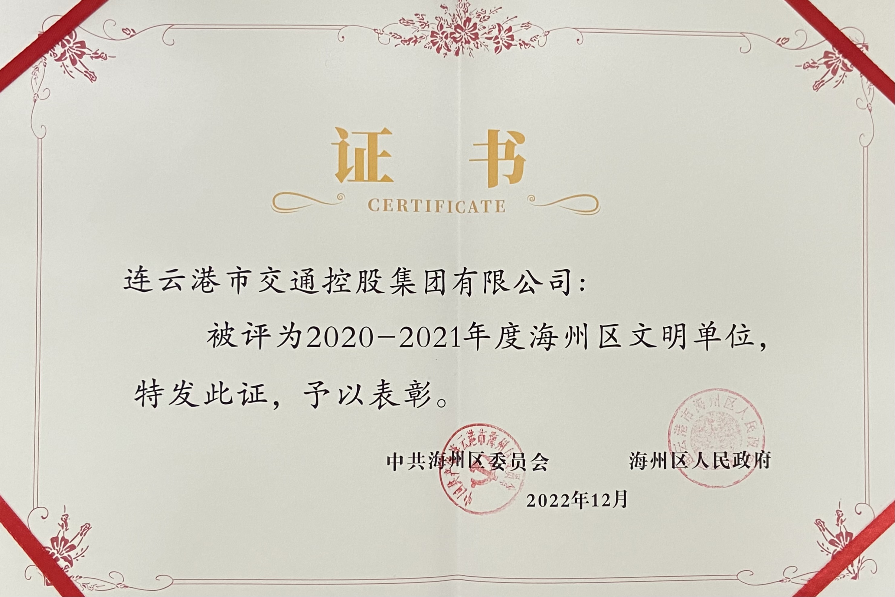 中共連云區(qū)委、連云區(qū)人民政府授予以下集團(tuán)權(quán)屬單位2020-2021年度連云區(qū)文明單位榮譽(yù)稱號(hào):