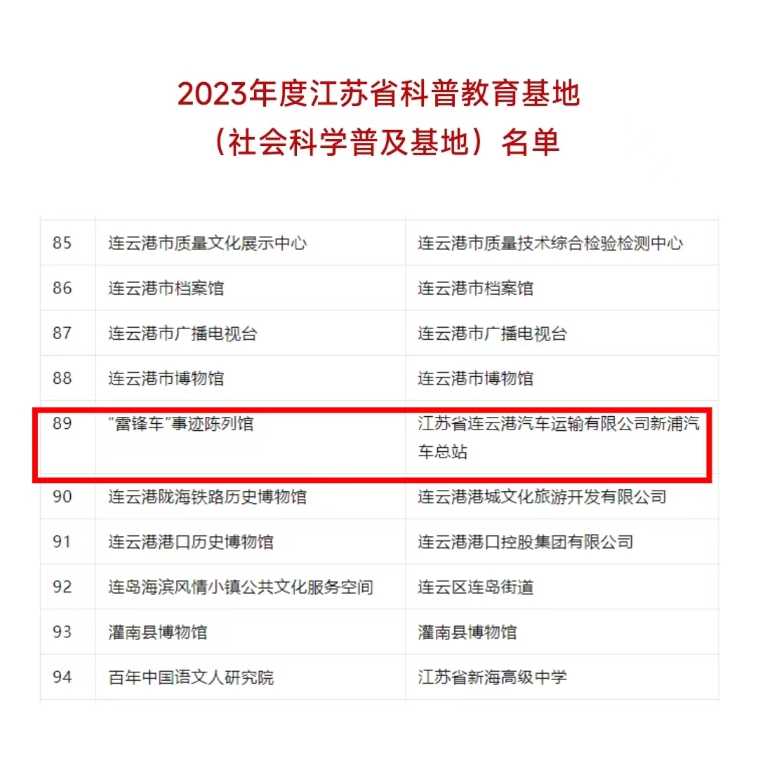 日前,由江蘇省科協(xié)、省社科聯(lián)、省科技廳、省教育廳聯(lián)合開展的2023年度江蘇省科普教育基地認(rèn)定工作結(jié)束,“雷鋒車”事跡陳列館成功入選。