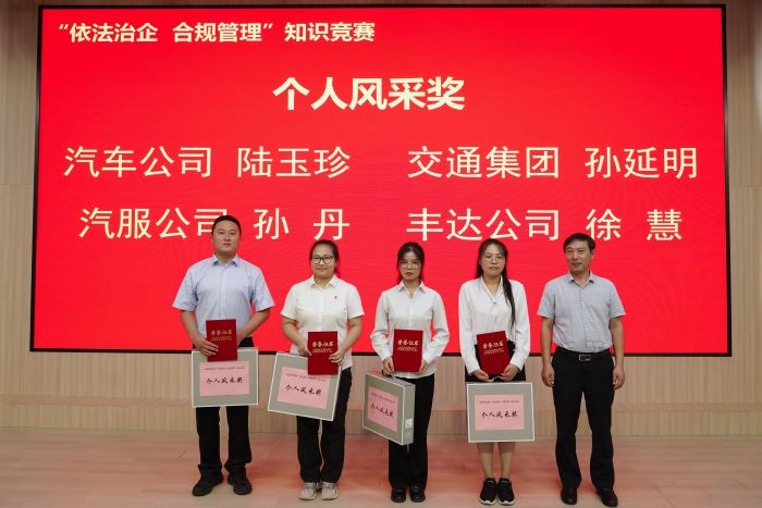 8月20日,汽服公司在交通控股集團舉辦的“依法治企 合規(guī)管理”知識競賽中脫穎而出,以優(yōu)異的成績榮獲二等獎和個人風采獎。此次競賽不僅展現(xiàn)了汽服公司強大的團隊凝聚力和員工們的專業(yè)素養(yǎng),更彰顯了公司在依法治企、合規(guī)管理方面的堅定決心和顯著成效。