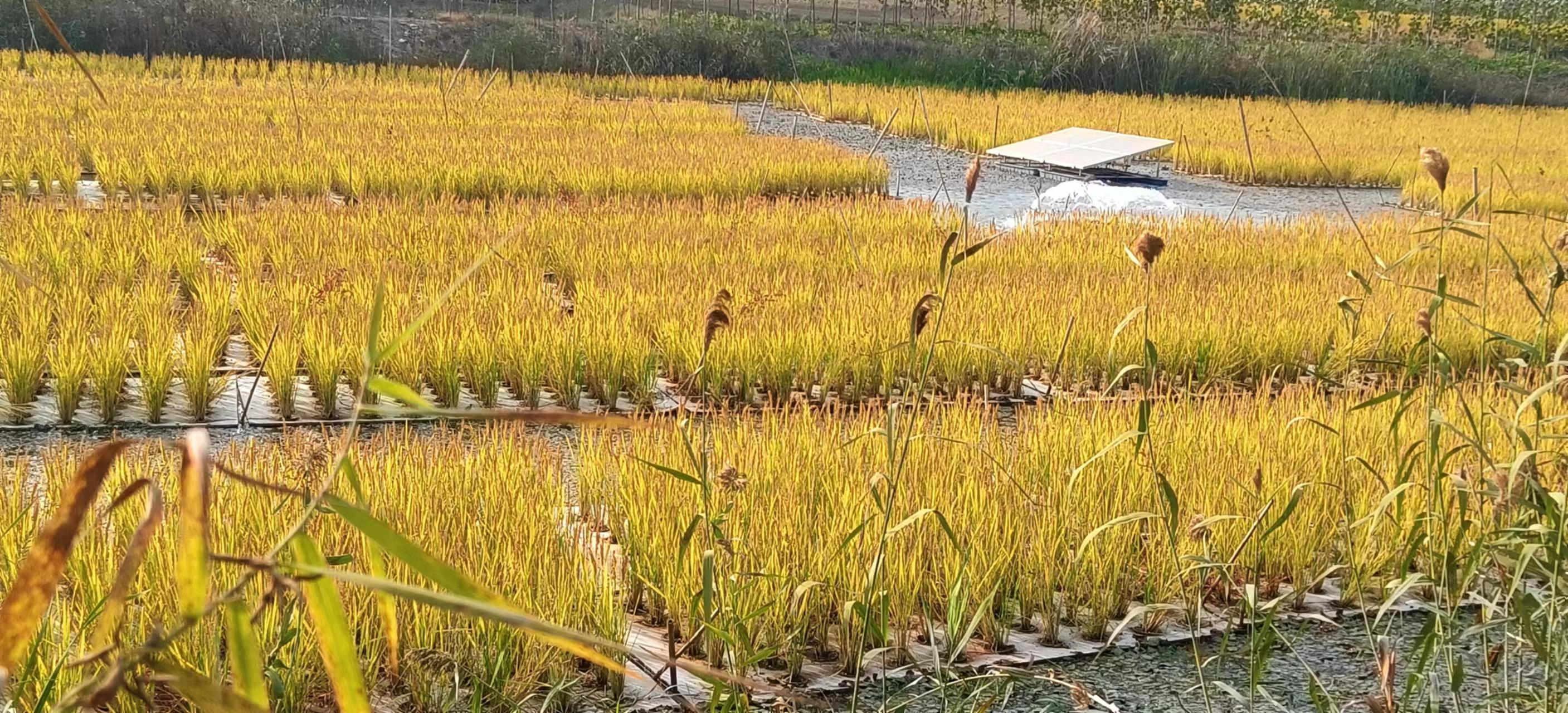 今年石梁河庫區(qū)水上稻田共種植水稻10畝,目前已全部進(jìn)入臘熟期,水稻籽粒鮮重開始下降,干重持續(xù)上升到最大。為保證水稻質(zhì)量,預(yù)計十一月上旬待水稻全部進(jìn)入完熟期開展水稻采收工作。本次采收預(yù)計畝產(chǎn)量達(dá)到500斤/畝,預(yù)計總產(chǎn)量5000斤。