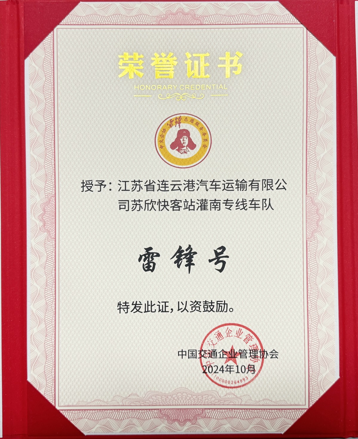 近日,由中國(guó)交通企業(yè)管理協(xié)會(huì)主辦的“中交企協(xié)雷鋒工委年會(huì)暨學(xué)雷鋒志愿服務(wù)典型集體和個(gè)人成果發(fā)布會(huì)”在北京隆重舉行。會(huì)上,汽車(chē)公司灌南專(zhuān)線車(chē)隊(duì)獲得“雷鋒號(hào)”稱(chēng)號(hào)。這一榮譽(yù)不僅是對(duì)車(chē)隊(duì)在客運(yùn)服務(wù)領(lǐng)域工作的認(rèn)可,更是對(duì)其深入貫徹雷鋒精神、全心全意服務(wù)于人民的宗旨的高度評(píng)價(jià)。