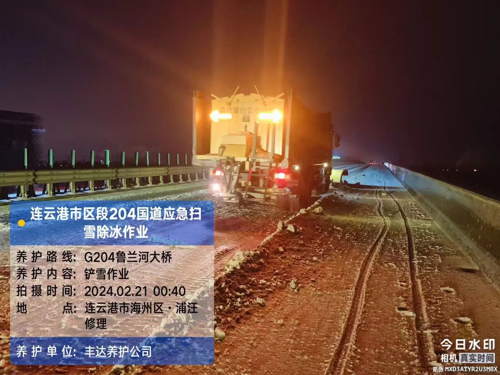 豐達公司迅速投入除冰雪戰(zhàn)役,做好管養(yǎng)的國省干道、港城大道、連徐高速及寧連高速等重點路段應急備戰(zhàn)工作,針對長陡大坡路段、橋梁、隧道出入口、背陰處等易積雪重點路段,提前布置防滑沙袋。20日晚,市區(qū)突降大雪,公司迅速出動橙色突擊隊及各重要值班值守人員晝夜奮戰(zhàn)冰雪一線,并連夜組織除雪車、撒布一體機等車輛在公司管養(yǎng)的國省干線、高速公路、港城大道等路段進行掃雪除冰作業(yè),不間斷鏟雪除冰,經(jīng)過公司干部職工連夜奮戰(zhàn),保證了車輛道路暢通,守護群眾出行安全。