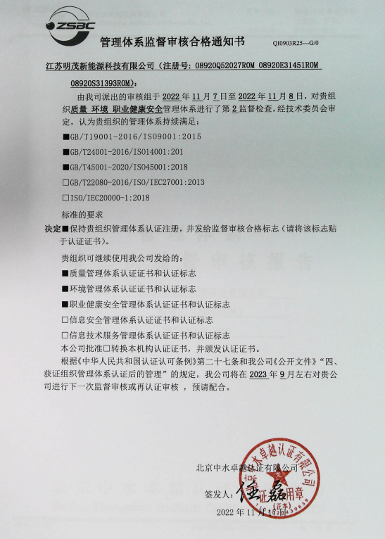 為確保質(zhì)量管理體系的充分性。適宜性和運行的持續(xù)有效性,進一步規(guī)范質(zhì)量管理行為,不斷提升公司質(zhì)量管理水平,按照審核機構(gòu)安排線上審核的方式,組織開展明茂公司2022年度質(zhì)量管理體系復(fù)審,并順利通過驗收。