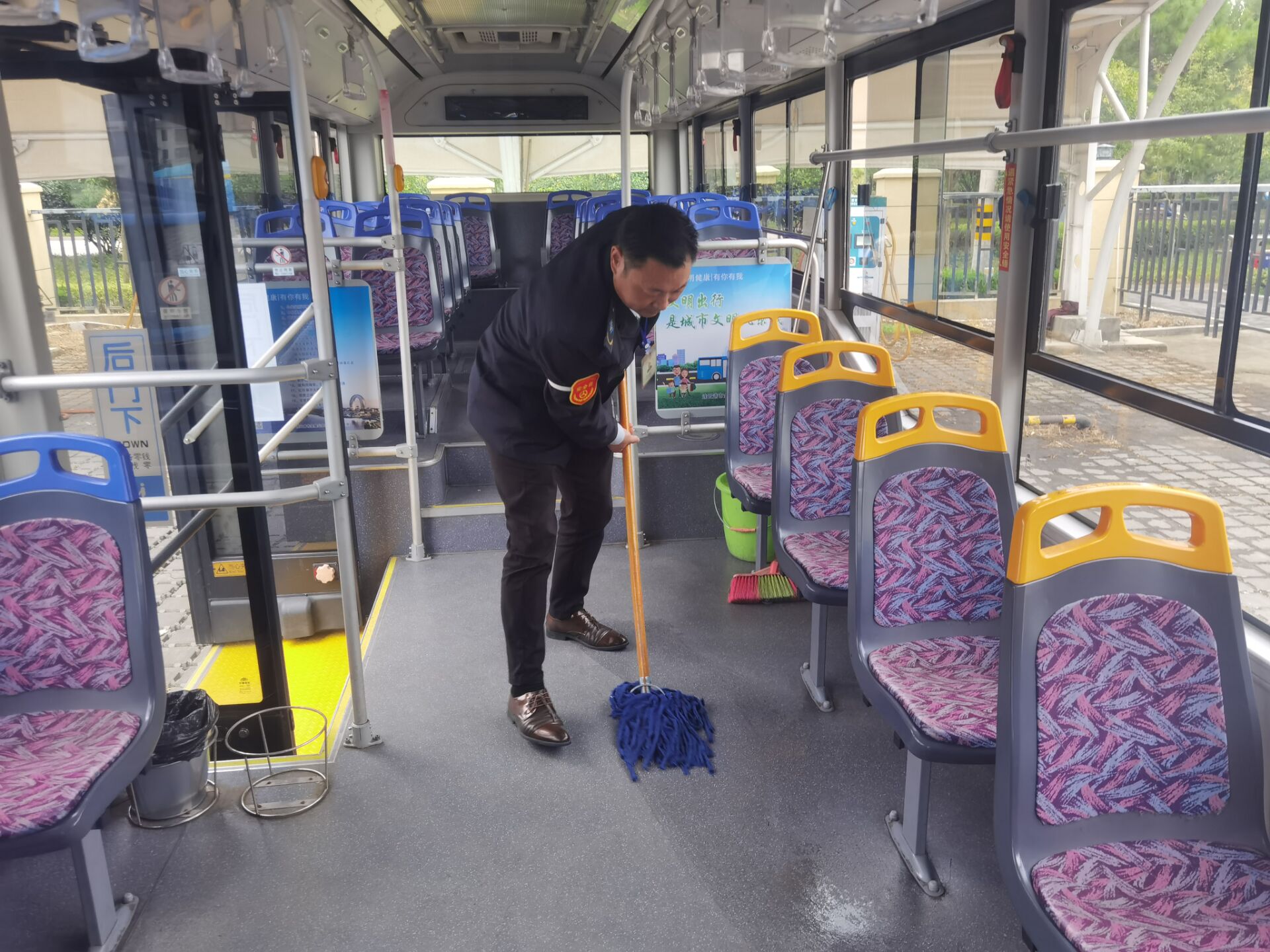 10月1日早上5點多,603路駕駛員樊耀聲就已經來到公司,檢查過車輛安全后,打上一瓶消毒液,把車廂內仔細消殺了一遍,打開了車里所有的窗戶,再用抹布把車廂座椅及扶手抹上一遍。等一切工序做完后,樊耀聲利用最后一點時間,急忙把從家里帶來的煎餅啃上幾口,便驅車駛入602路發(fā)車區(qū),開始了一天忙碌的工作。當問到樊耀聲,“別人放假了,休息了,陪著孩子出去玩了,您心里難受嗎”?樊耀聲搖搖頭道:“假日里的公交車不能沒有人開,市民的安全出行需要有人來保障,祖國的繁榮富強,百姓的安居樂業(yè),需要我們公交人的堅守,才能讓更多的市民過上一個祥和的節(jié)日,孩子會理解的?!?/span>